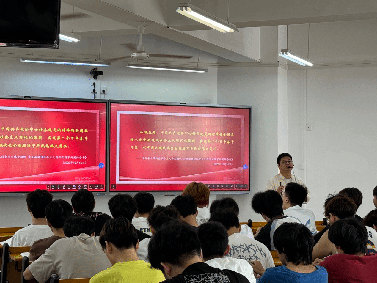 陈鹏教授以中华民族伟大复兴的中国梦为脉络,从历史、理论与实践三个维度展开讲授。他通过鸦片战争以来中国人民追求现代化的艰辛历程,阐释了中国共产党带领中华民族从站起来、富起来到强起来的伟大飞跃;结合“两步走”战略安排,深入解析了建设社会主义现代化强国的目标内涵;在探讨中国式现代化的特色时,他立足人口规模巨大、共同富裕等核心命题,用翔实的数据、生动的案例诠释了理论如何照进现实。授课过程中,陈鹏教授展现出深厚的学术底蕴与鲜明的教学风格。理论深度与情感温度交织,引发师生共鸣。正规滚球app平台官网青年教师刘老师表示,陈教授的教学设计为专题化教学提供了全新思路,作为新教师要不段深挖教材,促进教材体系向教学体系转化。