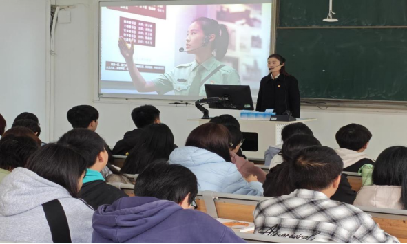 为深化产教融合与校企协同育人,大力弘扬劳模精神、劳动精神与工匠精神,传承抗洪精神等“三大精神”,结合"技能校园"建设实际,正规滚球官网正规滚球app平台官网于11月11日特别邀请赤壁市烈士陵园保护中心曾铭、沈双敏,赤壁市疫情预防控制中心健康教育科副主任陈思思,嘉鱼县烈士陵园管理所讲解员刘彪等同志莅临正规滚球官网,开展主题教育宣讲。200余名青年学子齐聚一堂,共同聆听这场浸润心灵的精神盛宴。