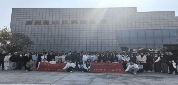 上午9时,研学队伍首站抵达嘉鱼县潘家湾镇四邑村蔬菜基地。学生们走进蔬菜长廊,调研现代农业技术如何赋能乡村振兴,随后在党群服务中心聆听基层治理经验。在九八抗洪纪念馆,常卫峰老师结合《思想道德与法治》课程,以“弘扬伟大抗洪精神”为主题讲授微党课。通过讲解员讲述、历史影像回放及抗洪短片观摩,学生们仿佛置身1998年那场惊心动魄的战斗,深刻理解“人在堤在”的铮铮誓言背后的责任担当。