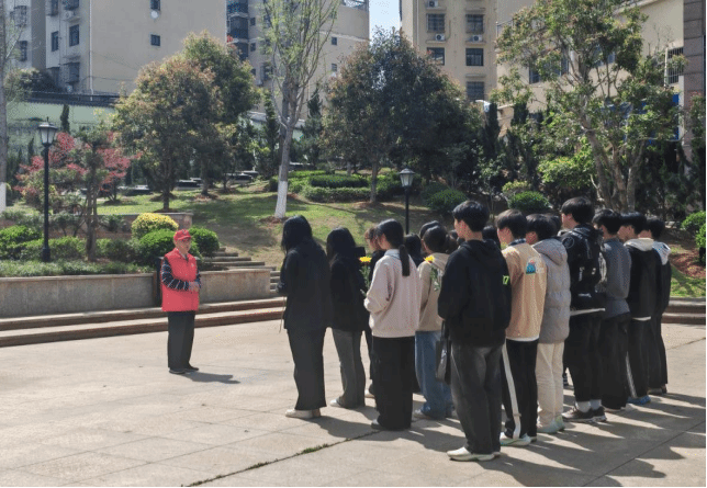 思政课教师解维娟老师对一九五烈士陵园作简要介绍。一九五烈士纪念碑所安葬的烈士,多数为1949年解放军南下作战及抗美援朝作战中因伤病住院病故的各部队战士,还有解放军第一九五医院因公殉职的工作人员,生前分属38军、40军、41军、四野政治部、司令部……。