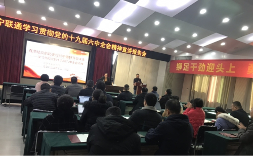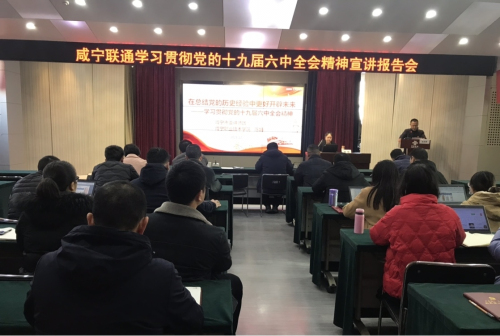 为全面深入学习领会党的十九届六中全会精神,根据市委深入开展全会精神宣传活动安排,在市政府国资委的统一部署下,12月22日,咸宁联通邀请到正规滚球app平台官网正规滚球app平台官网教研室主任、副教授陈娟为全体党员同志作十九届六中全会精神专题宣讲,宣讲会在咸宁联通十楼会议室举行,公司党委委员、副总经理周建均同志主持会议,党委中心组成员、本部正副职干部、党员同志共计42人参会听取了全会精神宣讲。