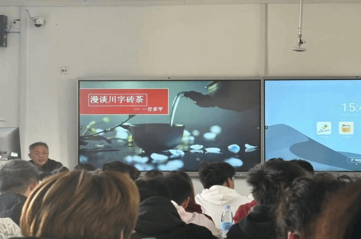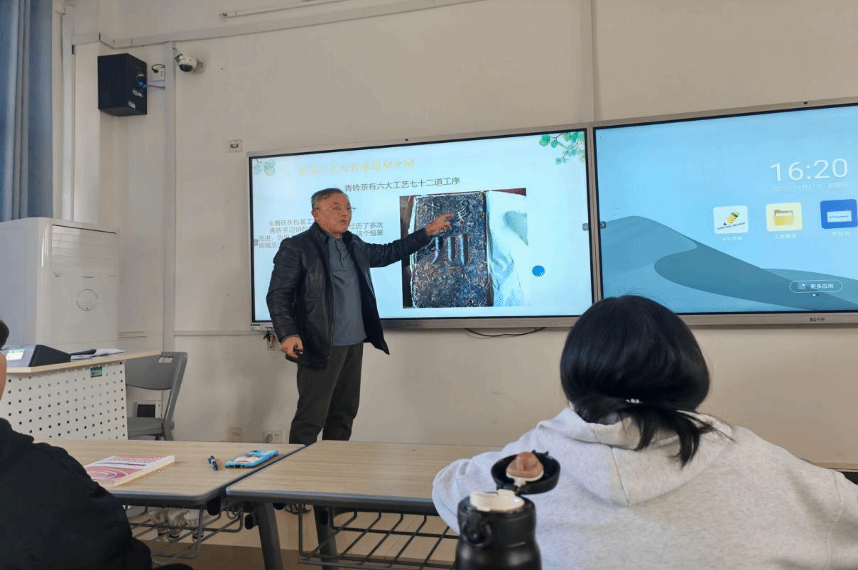 为了丰富“大思政课”的形式和内容,增强学生的劳动意识,提高学生的职业能力素养,11月20日,正规滚球官网邀请了赵李桥砖茶制作技艺第四代国家级非遗传承代表人、全国供销系统劳模、湖北省首届“荆楚工匠”甘多平走进思政课堂,围绕“漫谈川字砖茶”为主题,为2024级学生代表开展了一堂生动有趣的思政课教学。