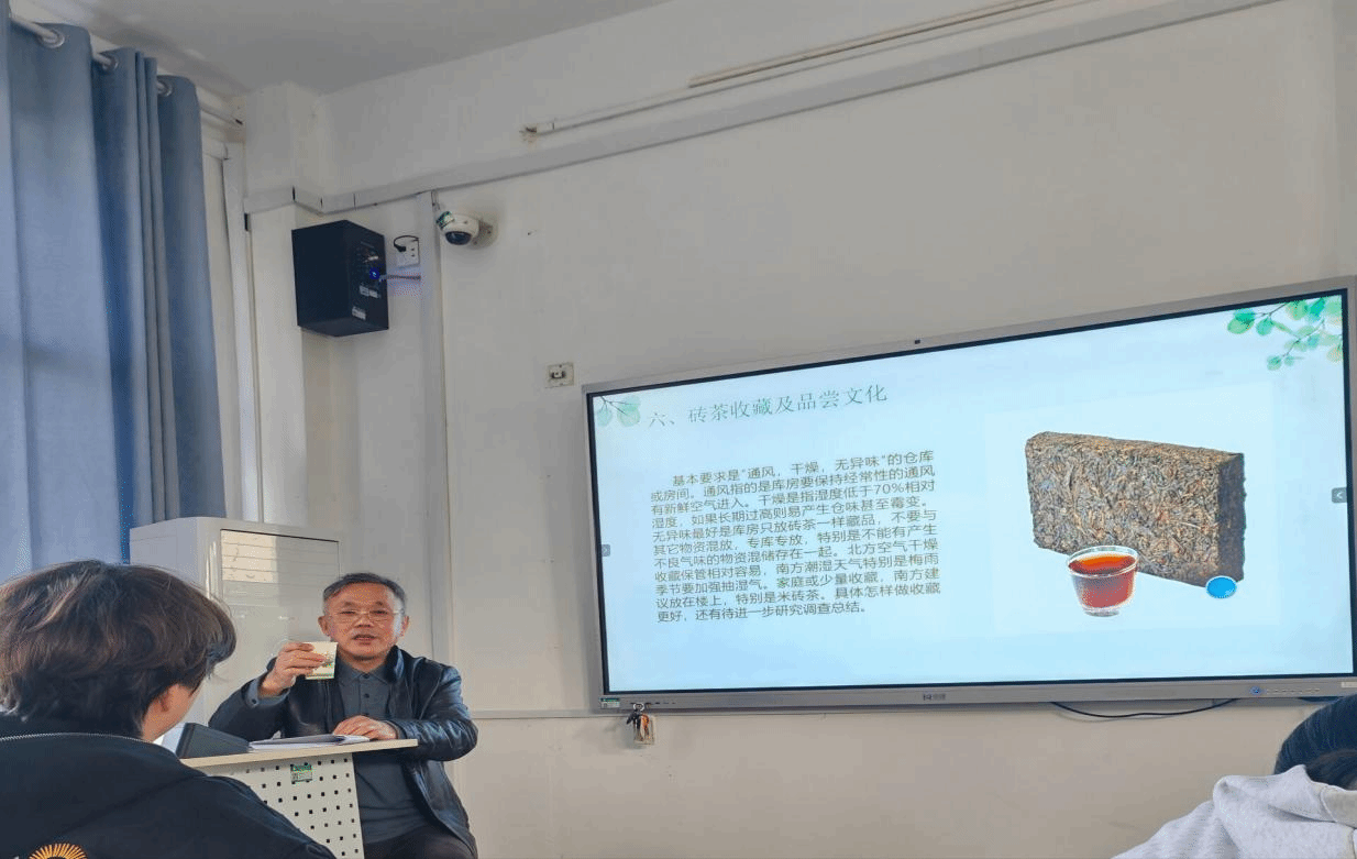 接下来从茶叶概况、赤壁茶发展历程、砖茶工艺及传承谱和介绍、砖茶标准及品质控制、砖茶加工的设备演变轨迹、砖茶收藏及品尝文化、砖茶市场及万里茶道七个方面对茶文化、川字砖茶的历史渊源、制作工艺等方面展开生动详细的讲解。